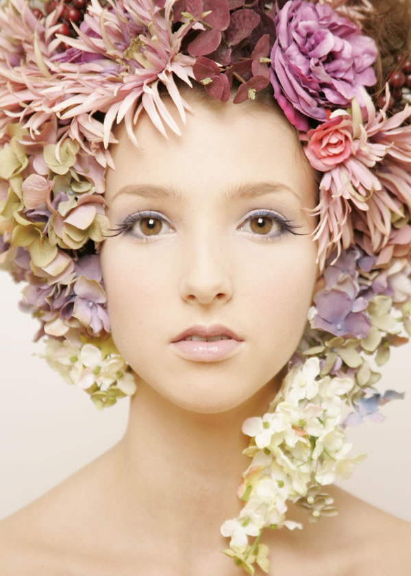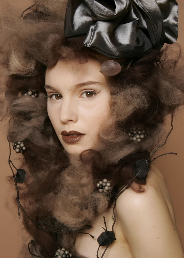 柔らかい透ける様なカールでラフに仕上げ、フロントにはポイントに編み込みを作り可愛らしさを表現。
